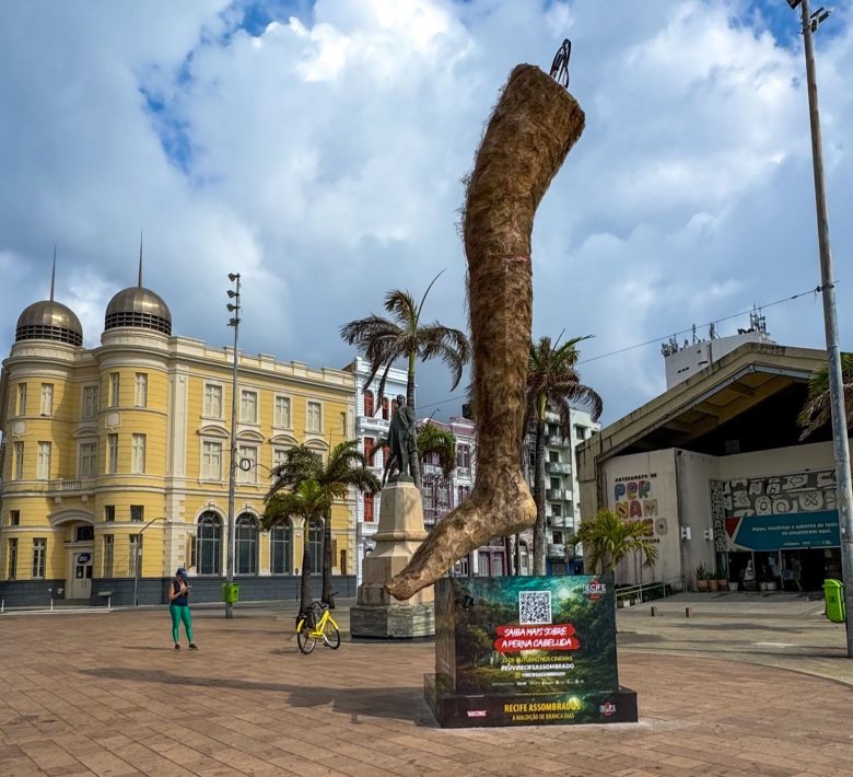 O Marco Zero, no Bairro do Recife, ganhou uma intervenção que vem chamando atenção nas redes sociais. Uma escultura gigante de Perna Cabeluda – lenda do imaginário popular pernambucano, esdtáexposta no local para anunciar a estreia do filme Recife Assombrado 2: A Maldição de Branca Dias, dirigido por Adriano Portela que chega aos cinemas, próximo …